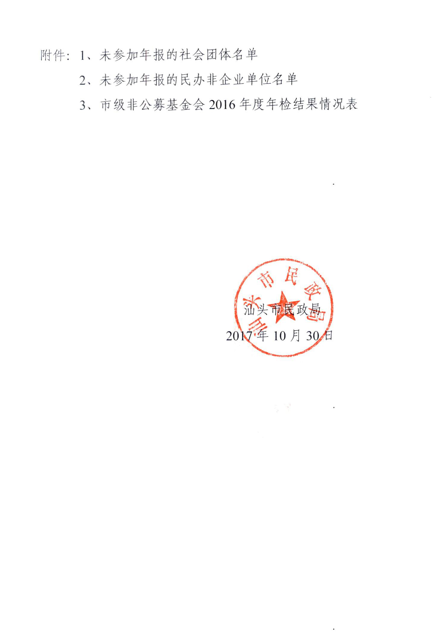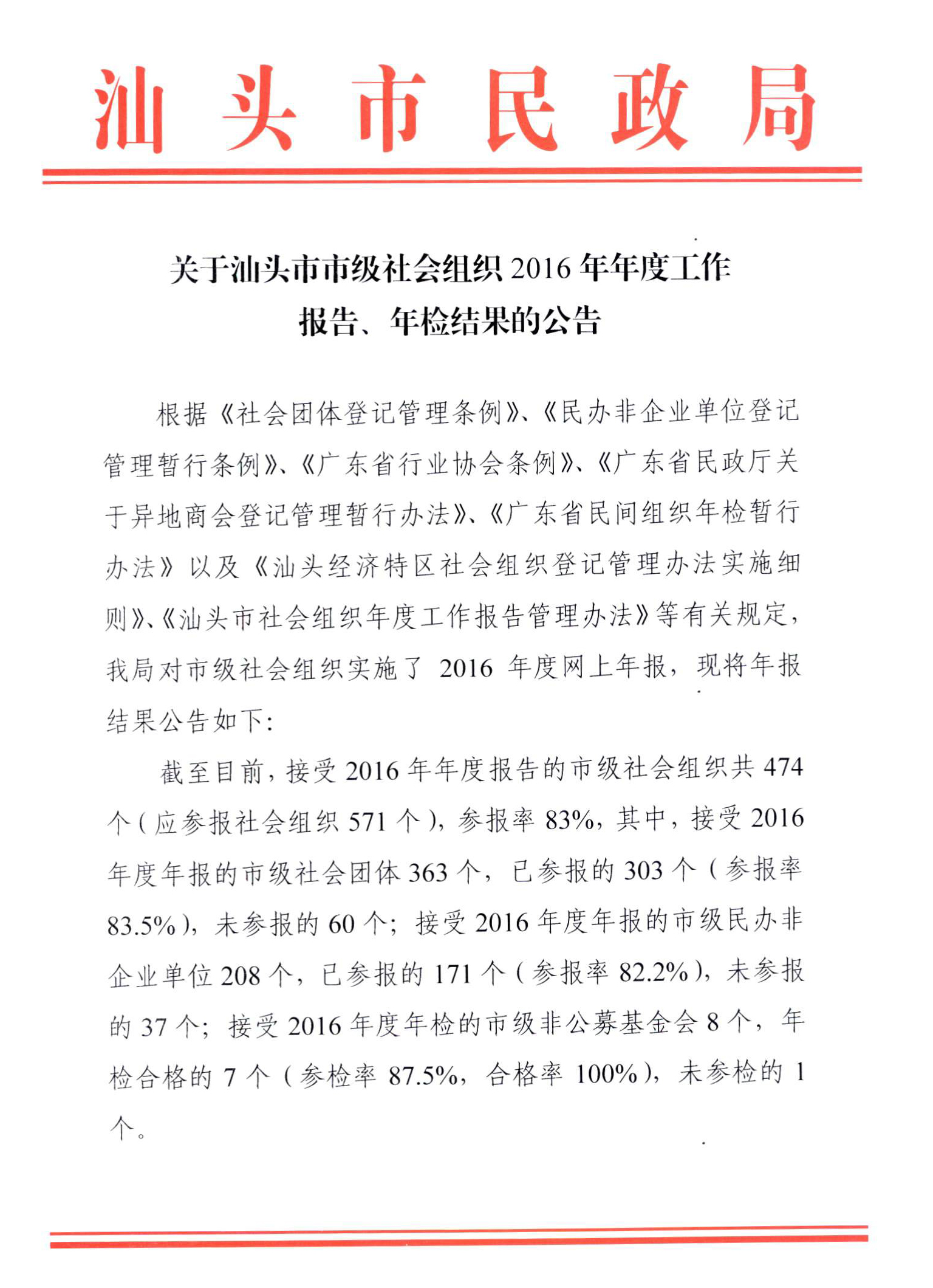 关于汕头市市级社会组织2016年年度工作报告、年检结果的公示