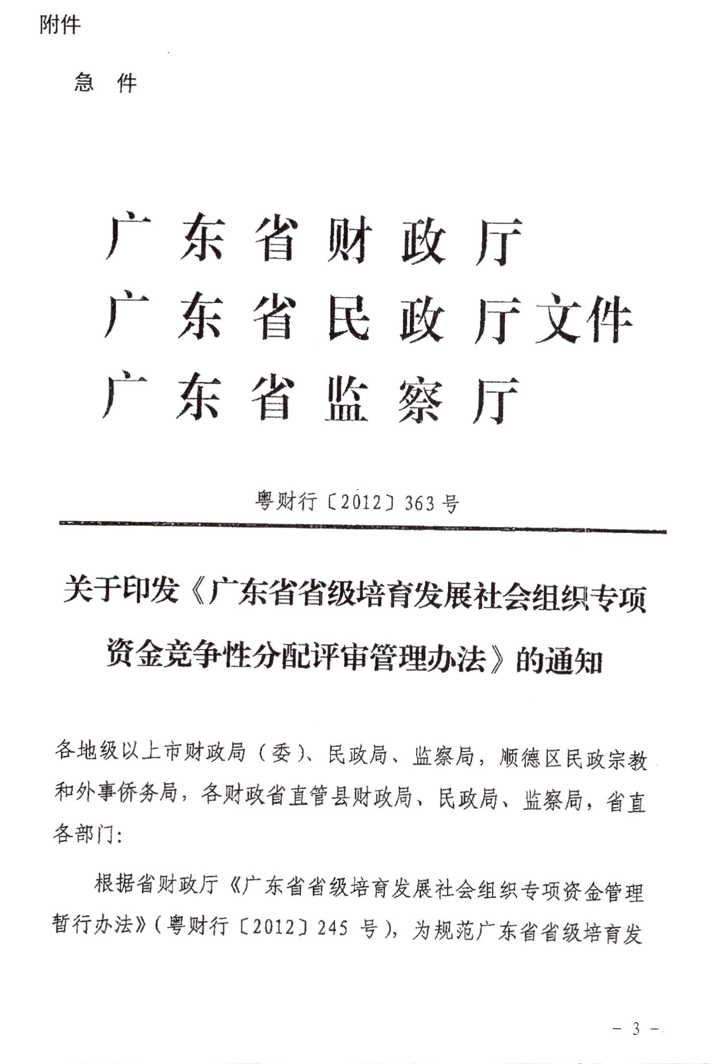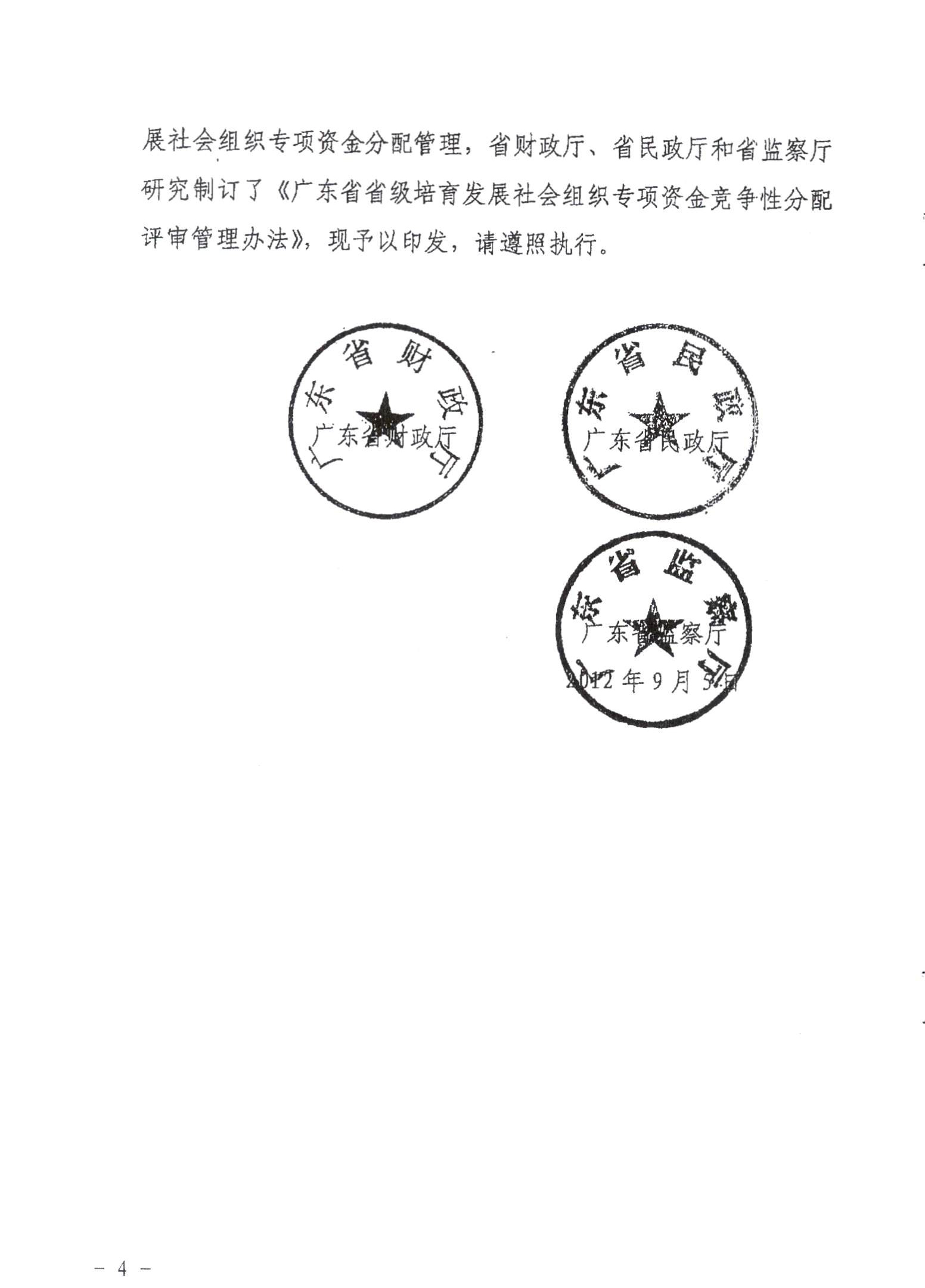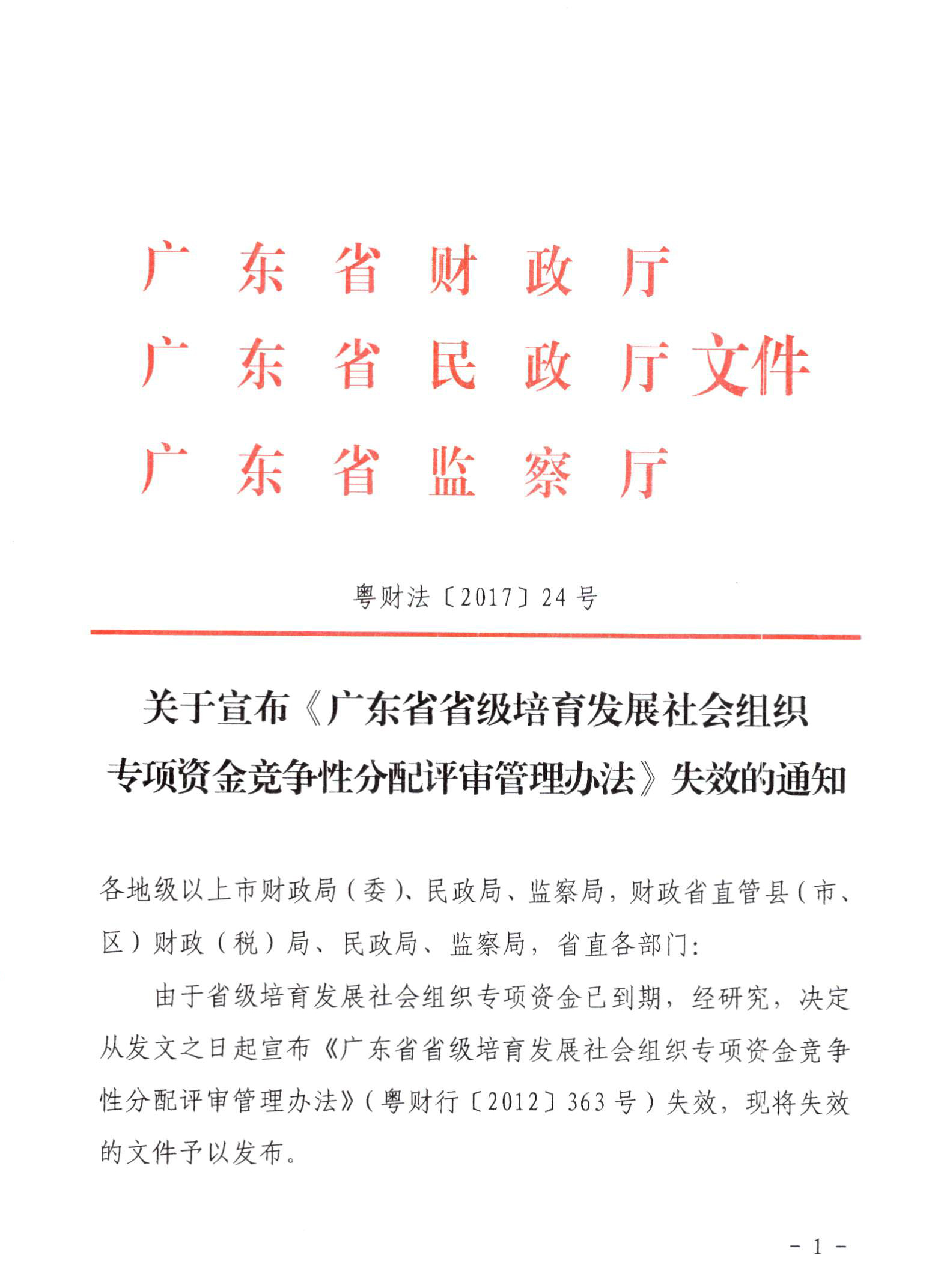 关于宣布《广东省省级培育发展社会组织专项资金竞争性分配评审管理办法》失效的通知