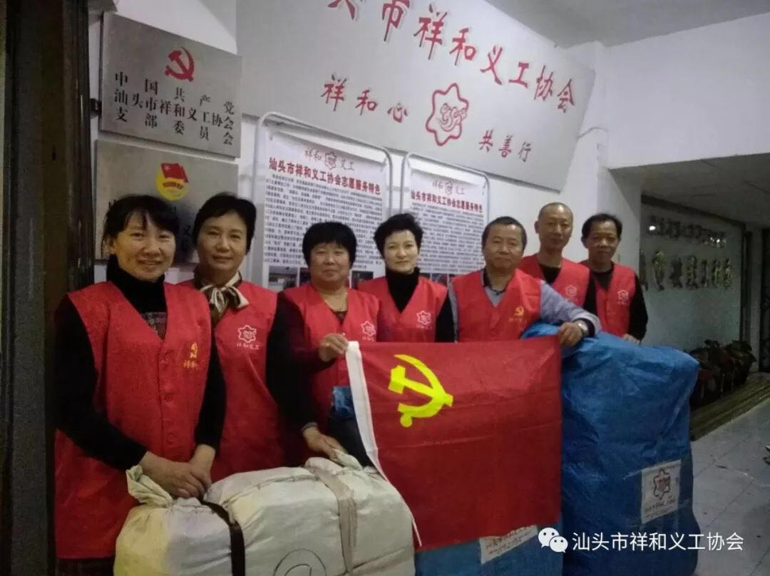 汕头市祥和义工协会党支部组织志愿者们走进社区慰问贫困户和孤寡老人,送去温暖和生活必须品等。党支部志愿者还联合爱心人士、安邦连锁鞋业、汕头市天成物流,为四川凉山州昭觉县和甘孜州甘孜县的山区孩子们募集了一共七百多双鞋子、棉袜、手套、围巾、耳套、帽子等御寒物品及文具一批,委托汕头市天成物流将爱心物资送到四川凉山、昭觉,让山区的小孩感受到温暖。在中山公园菊展期间,党员志愿者在园区维持秩序、劝导游客要爱护花木,并清理游客落下的垃圾。