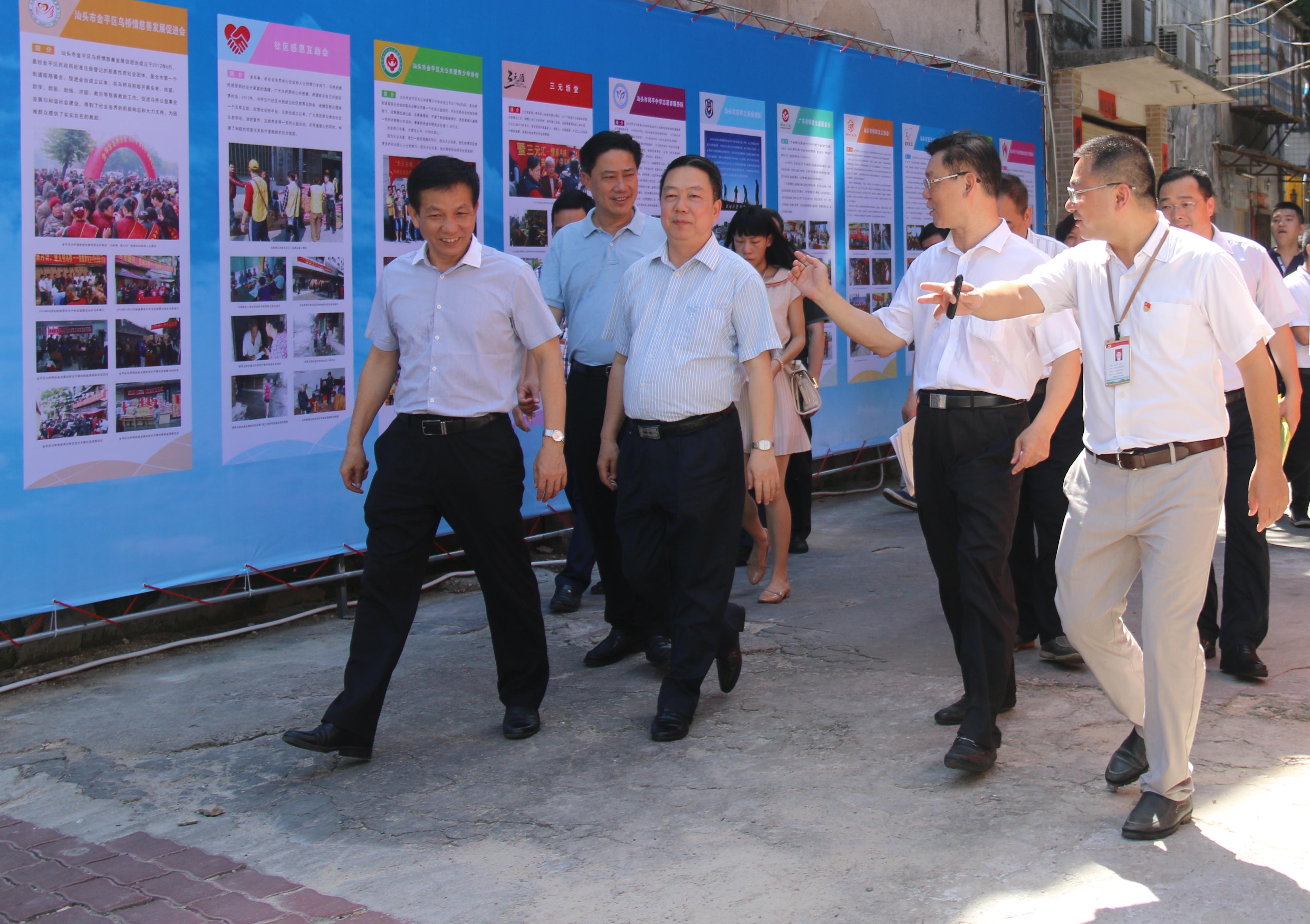 国家社会组织管理局副局长安宁、广东省民政厅厅长卓志强一行参观汕头市金平区乌桥街道基层社会组织联合会2