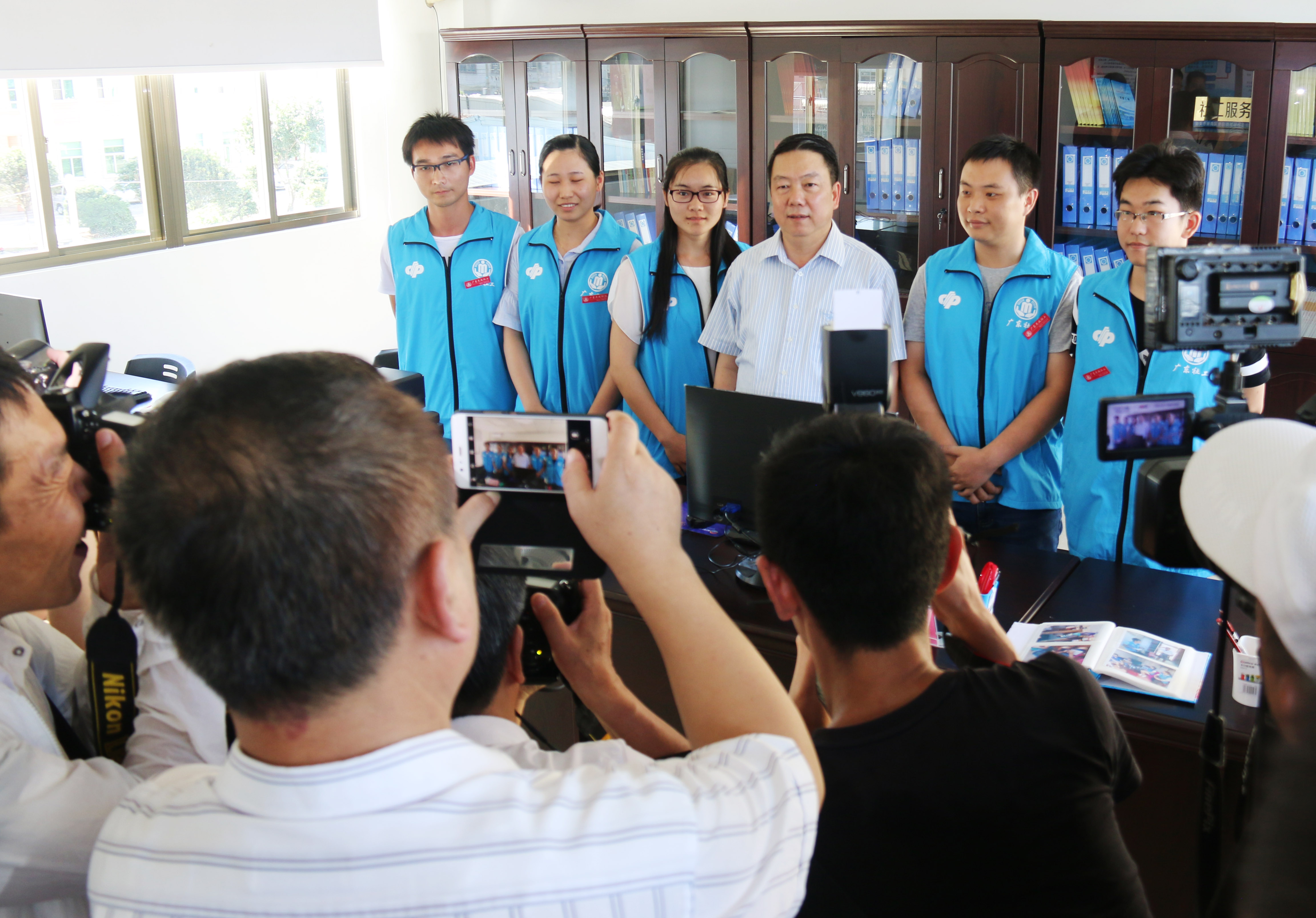 广东省民政厅厅长卓志强在参观汕头市成田镇基层社会组织联合会时与社工站社工合影