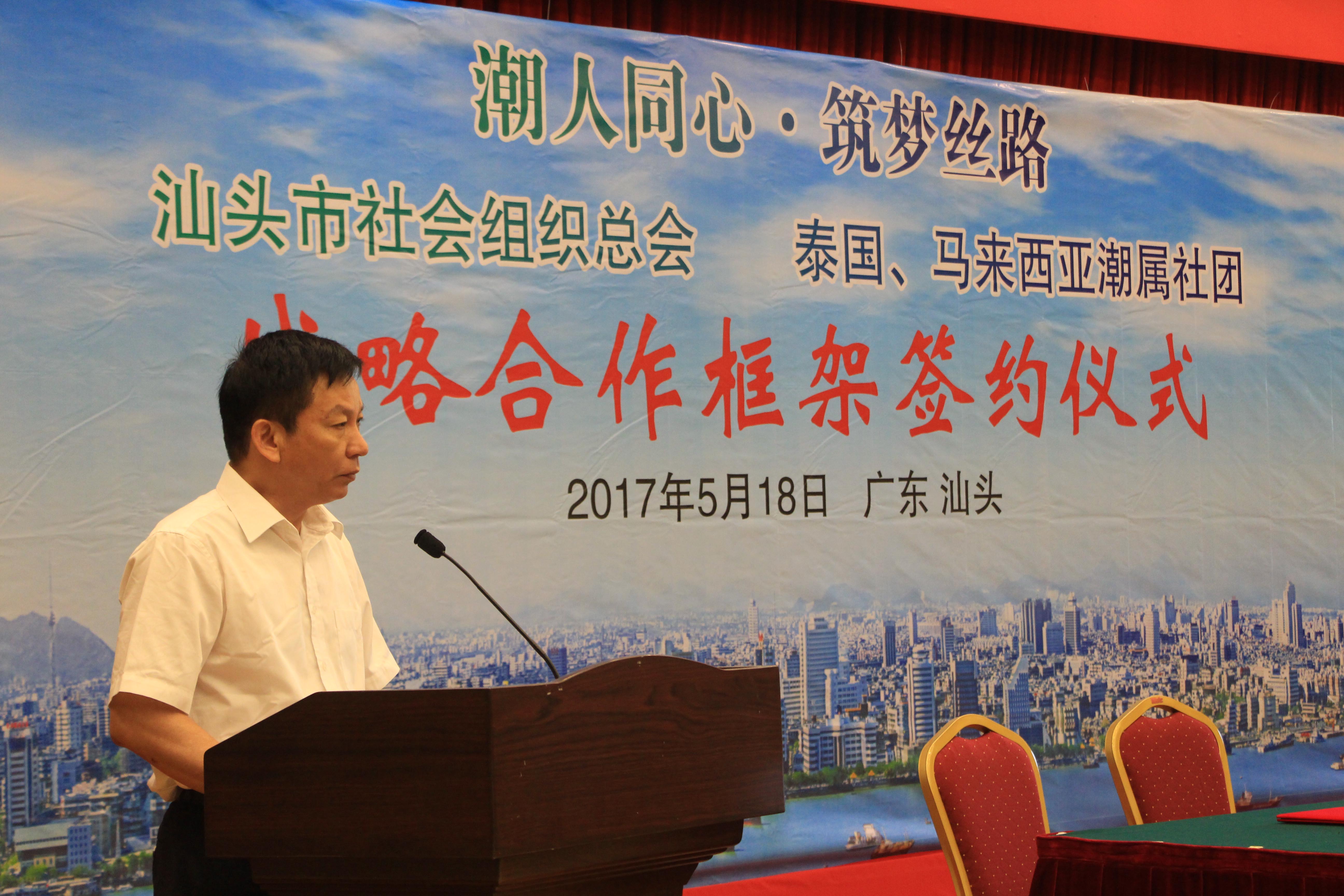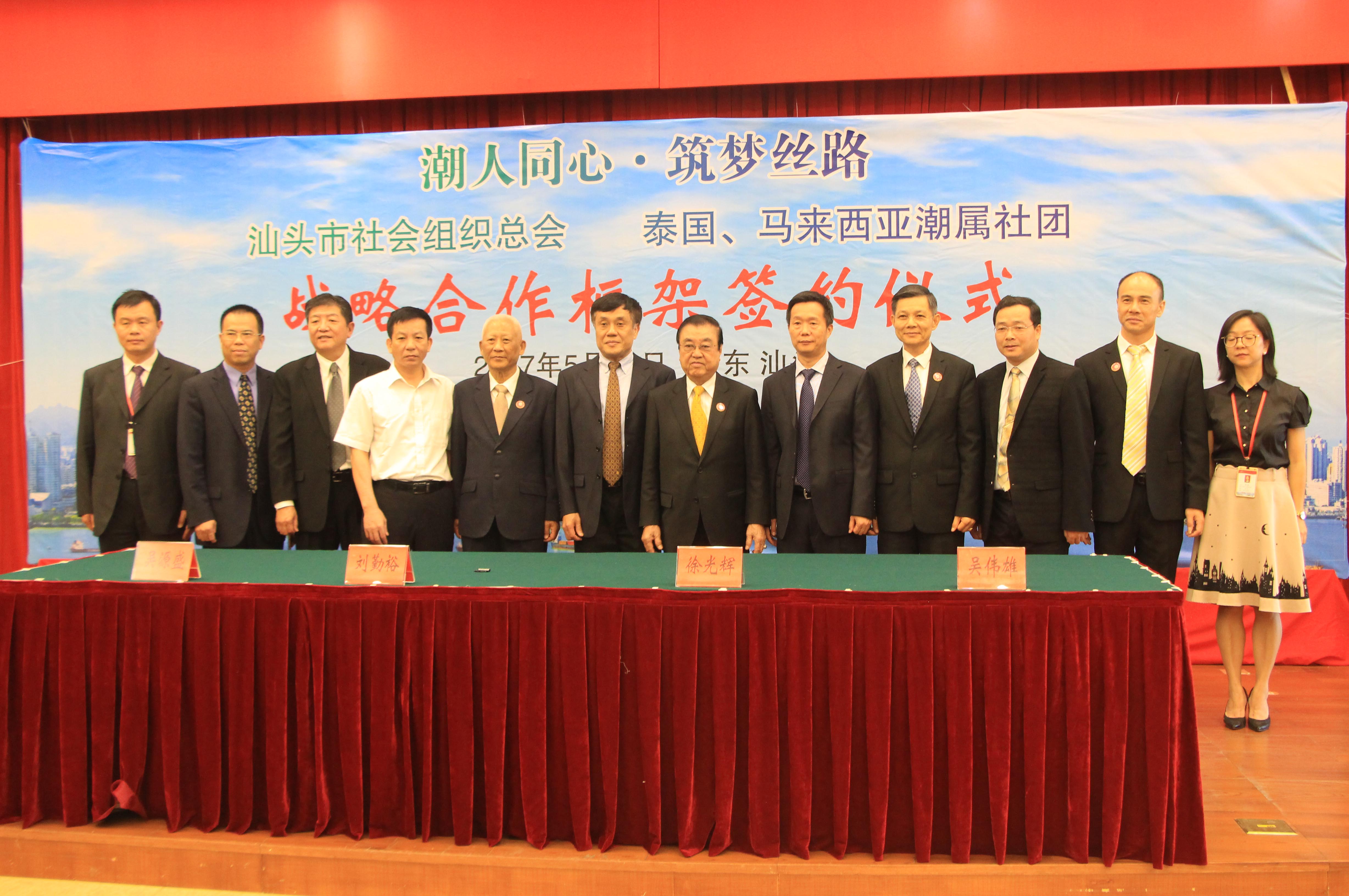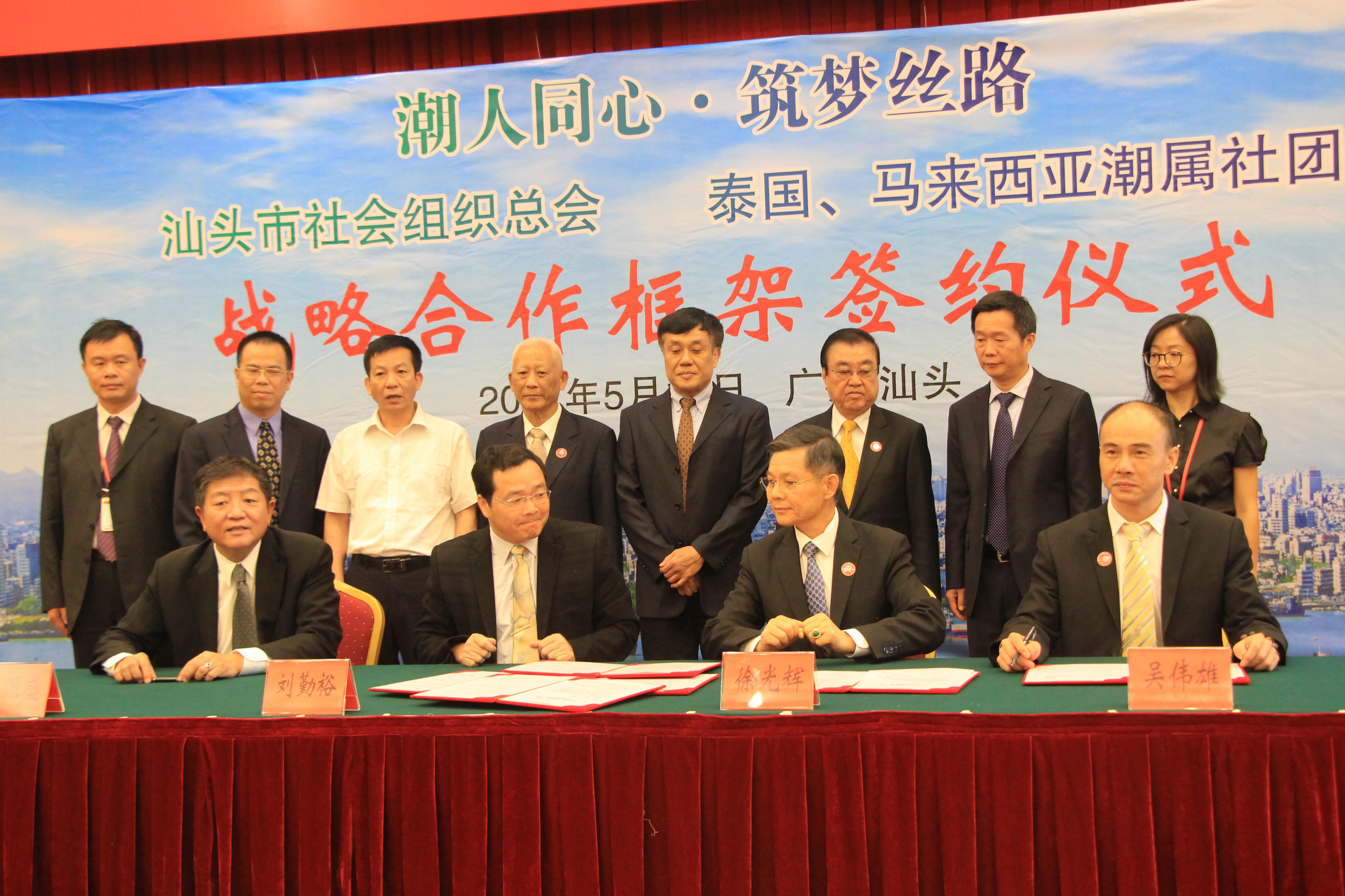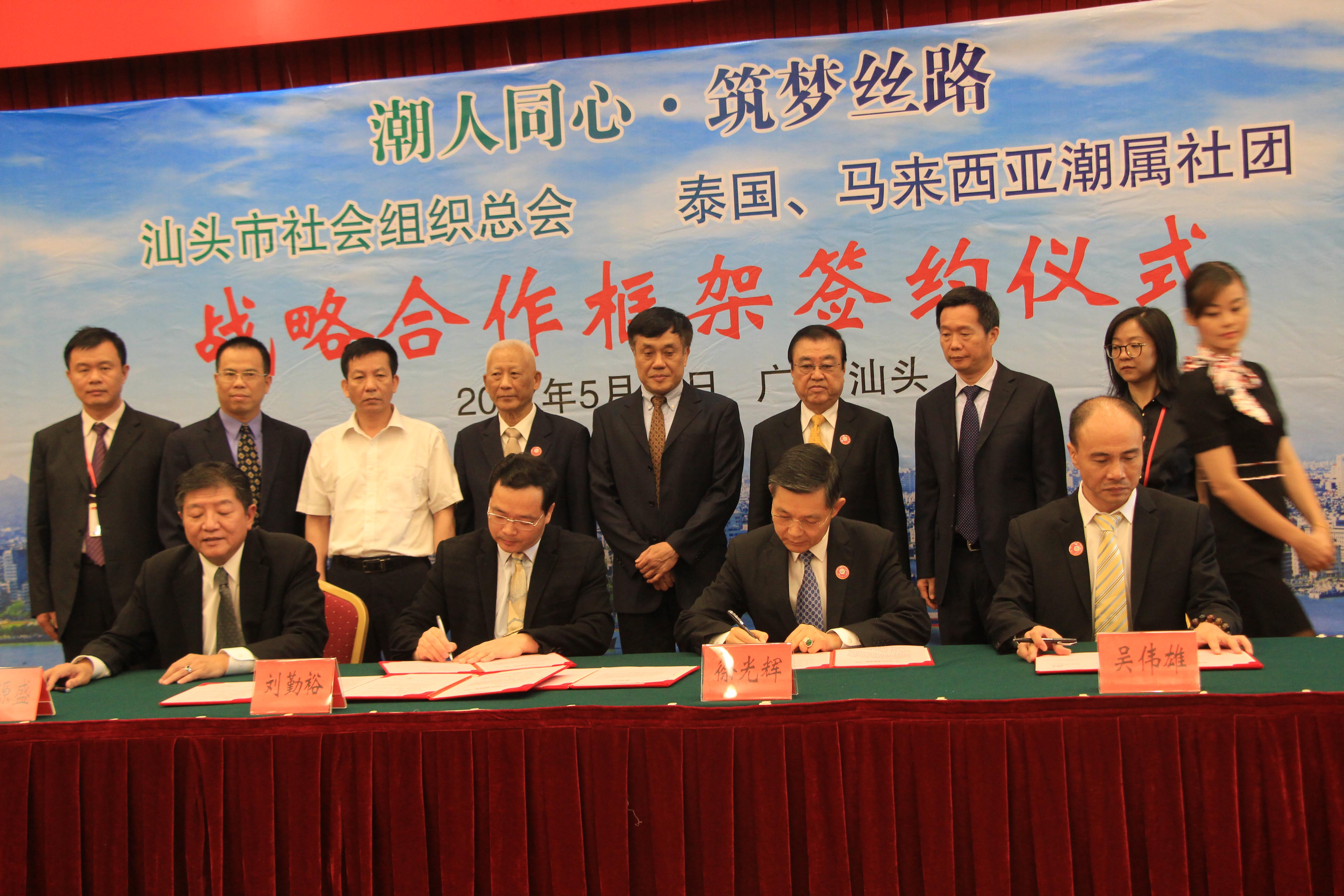 5月18日,汕头市民政局关于举行“潮人同心 海丝共赢”——汕头市社会组织总会与泰国、马来西亚友好社团签订战略合作协议仪式。
