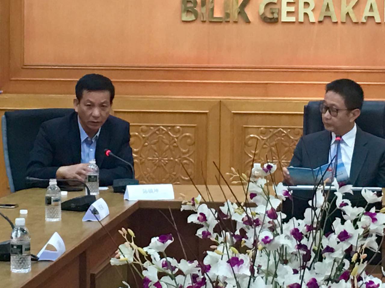 上图为访问团会见雪兰莪州议员拿督邓章钦的情景