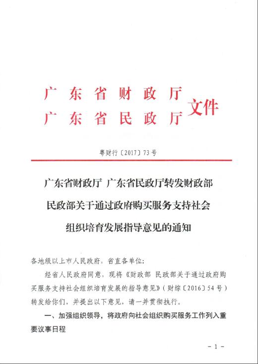 广东省财政厅 广东省民政厅转发财政部民政部关于通过政府购买服务支持社会组织培育发展指导意见的通知